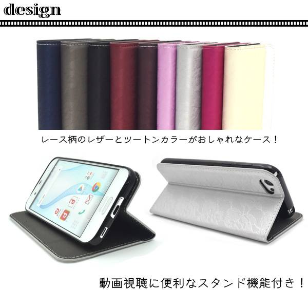 ベルトなし カード入れ カード収納 SIMフリー スマートフォンケース スマホケース手帳型 【父の日プレゼント 父の日ギフト sale スーパーセール】【おすすめ】【オススメ】【母の日】【父の日】【敬老の日】【プレゼント】【通販】【ボーナス特集】おしゃれなレース柄! AQUOS R SH-03J/SHV39/605SH用手帳型レースデザインレザーケース レザー地の上に薄くレース柄がプリントされた上品なケースです。